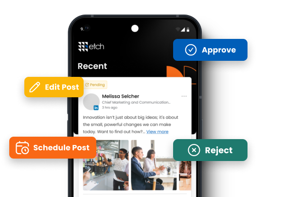 When you sign up with us for Leadership Branding service, you will be assigned a dedicated team to work with you. Post meaningful discovery call sessions and approving your communication strategy, download our smart leadership branding tool - Etch. An advanced app designed to simplify your needs to directly share your content on LinkedIn.